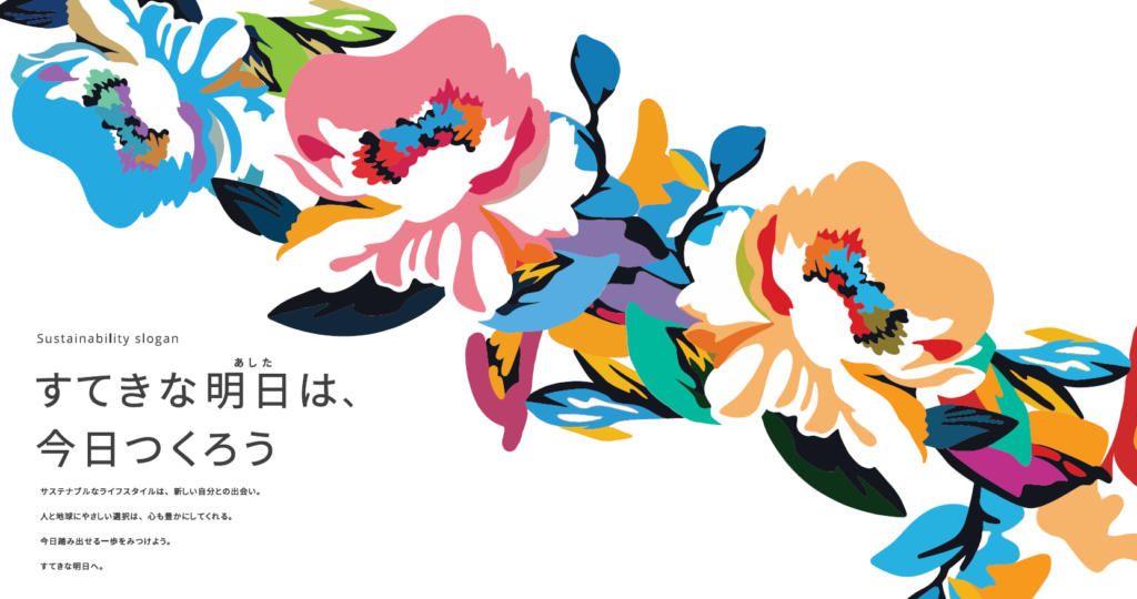 「すてきな明日」は、持続可能な環境、社会、経済を実現した、誰もが笑顔で過ごせる未来を指します。「今日つくろう」というフレーズが入ることで、未来は遠い将来のことではなく、私たち一人ひとりの日々の行動によって作られていくものであることを強調し、アクションをすぐに促すメッセージが込められています。
